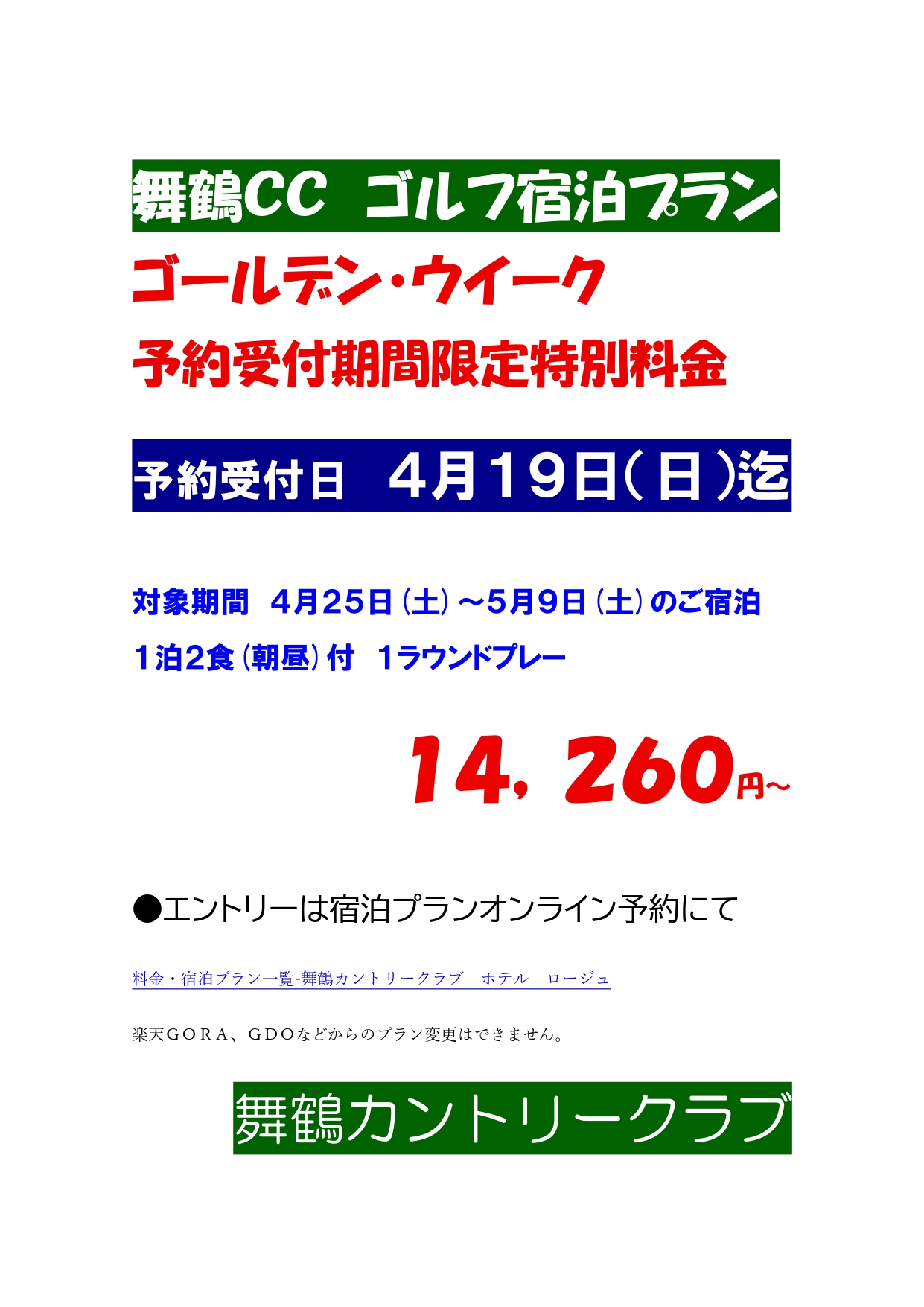 宿泊プラン ゴールデンウイーク対象 予約期間限定プラン