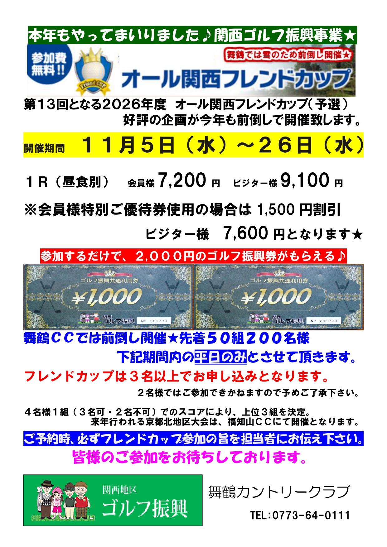 関西ゴルフ振興 2026年フレンドカップ予選 前倒し開催のご案内