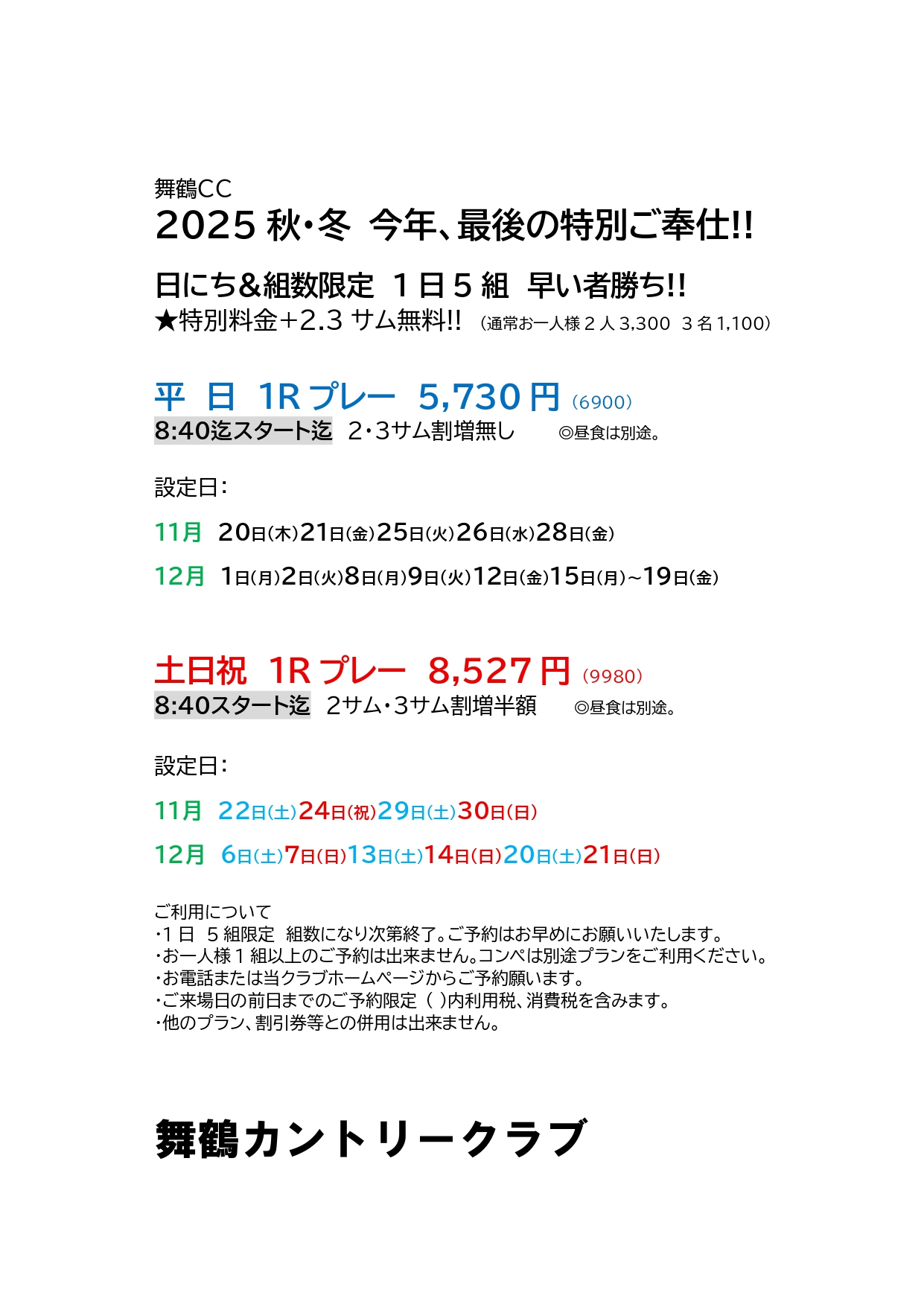 3. 2025秋・冬 今年最後の特別ご奉仕!! 日程更新★