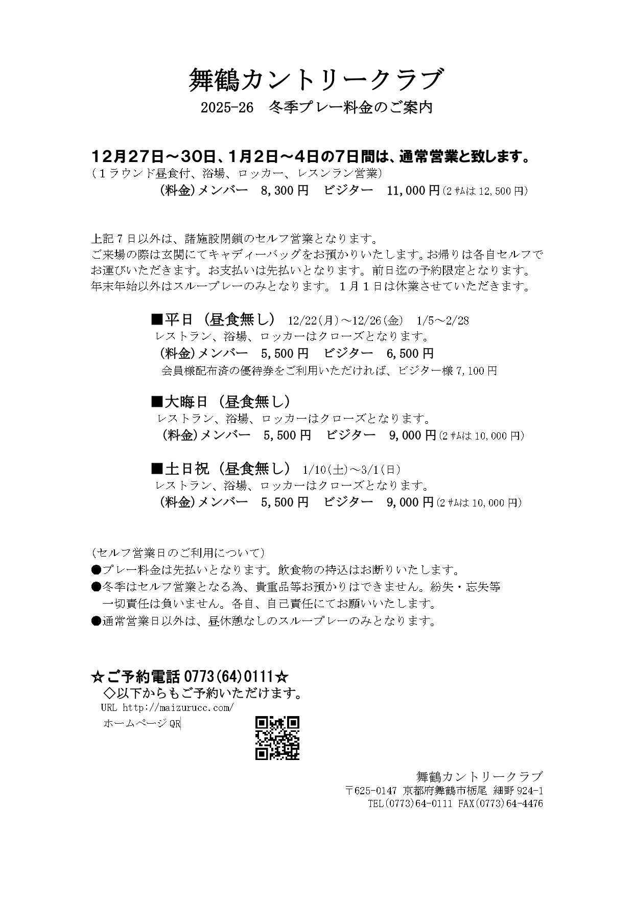 12月27日(土)~30日(火)、1月2日(金)~4日(日)は通常営業いたします。12月31日はセルフ営業。1月1日は休場させていただきます。
